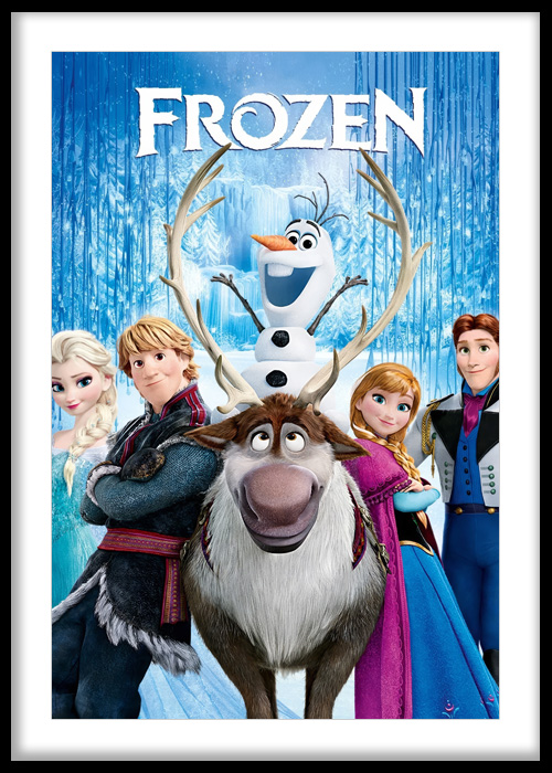 Bring the charm of a snowy kingdom into your space with this delightful art print filled with beloved characters and icy blue tones. With its playful composition and enchanting backdrop of frosted forests, this piece captures the warmth of friendship and adventure in a magical winter setting.