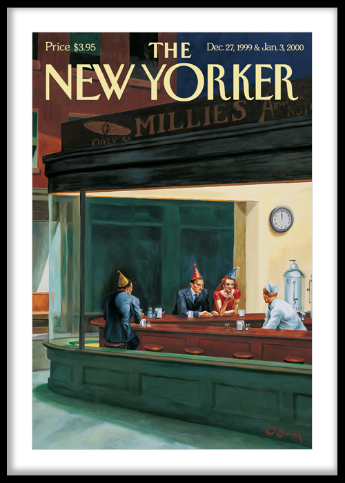 Capture the charm of everyday life with this beautifully illustrated art print inspired by classic magazine cover artistry. Set in a softly lit diner scene, the composition blends nostalgia, subtle humor, and human connection, inviting viewers into a quiet yet expressive urban moment.