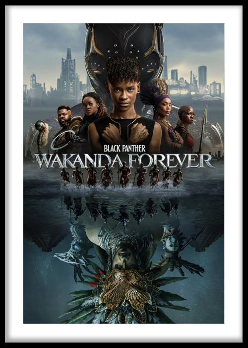 Celebrate power, heritage, and resilience with this visually striking art print inspired by a legendary kingdom and its enduring spirit. Featuring a bold central figure, layered character portraits, and a mirrored underwater reflection, the composition blends emotion with cinematic grandeur, creating a deeply symbolic and captivating piece.